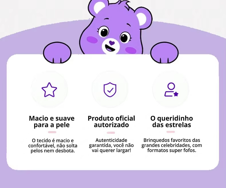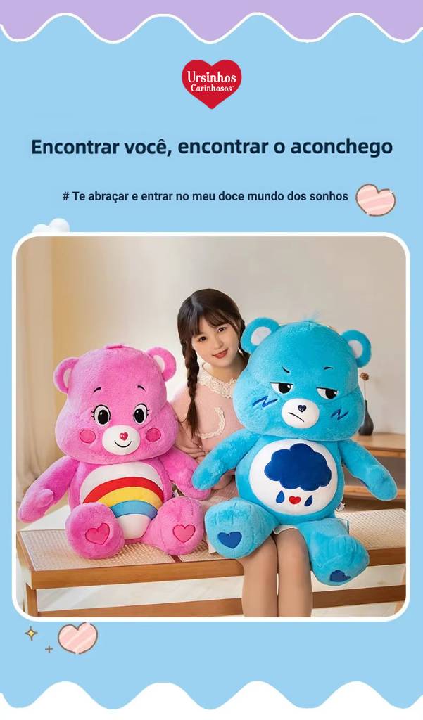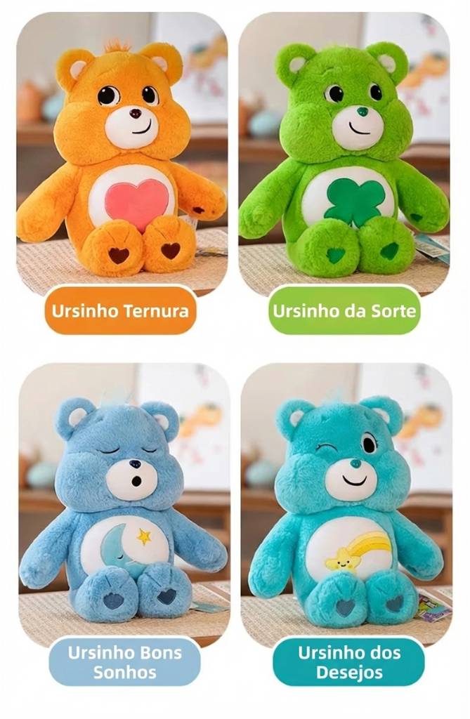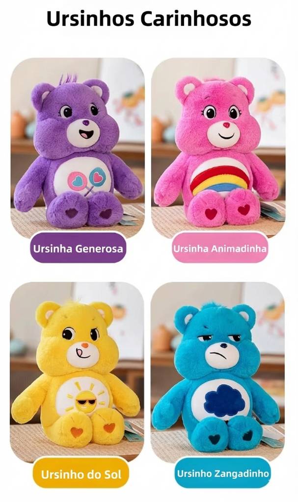 Os clássicos Ursinhos Carinhosos chegaram em versões super macias e perfeitas para colecionar! Ideais para fãs, crianças e adultos que amam nostalgia, cores e fofura.